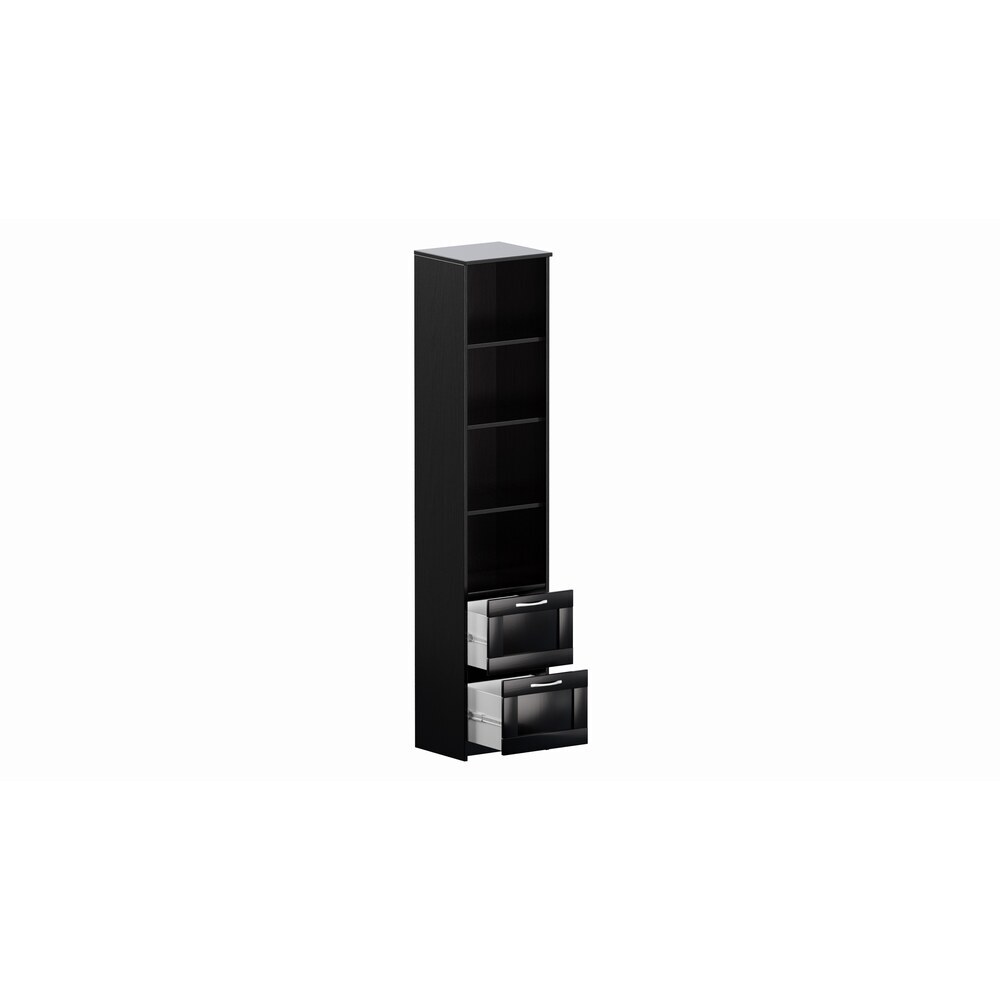 Стеллаж Сириус узкий 39х190 см с 2 ящиками и четырьмя полками. Выполнен в классическом стиле. Размер стеллажа 39х35х190 см. Подходит для использования в домашней и офисной обстановке. Выполнен из ЛДСП.