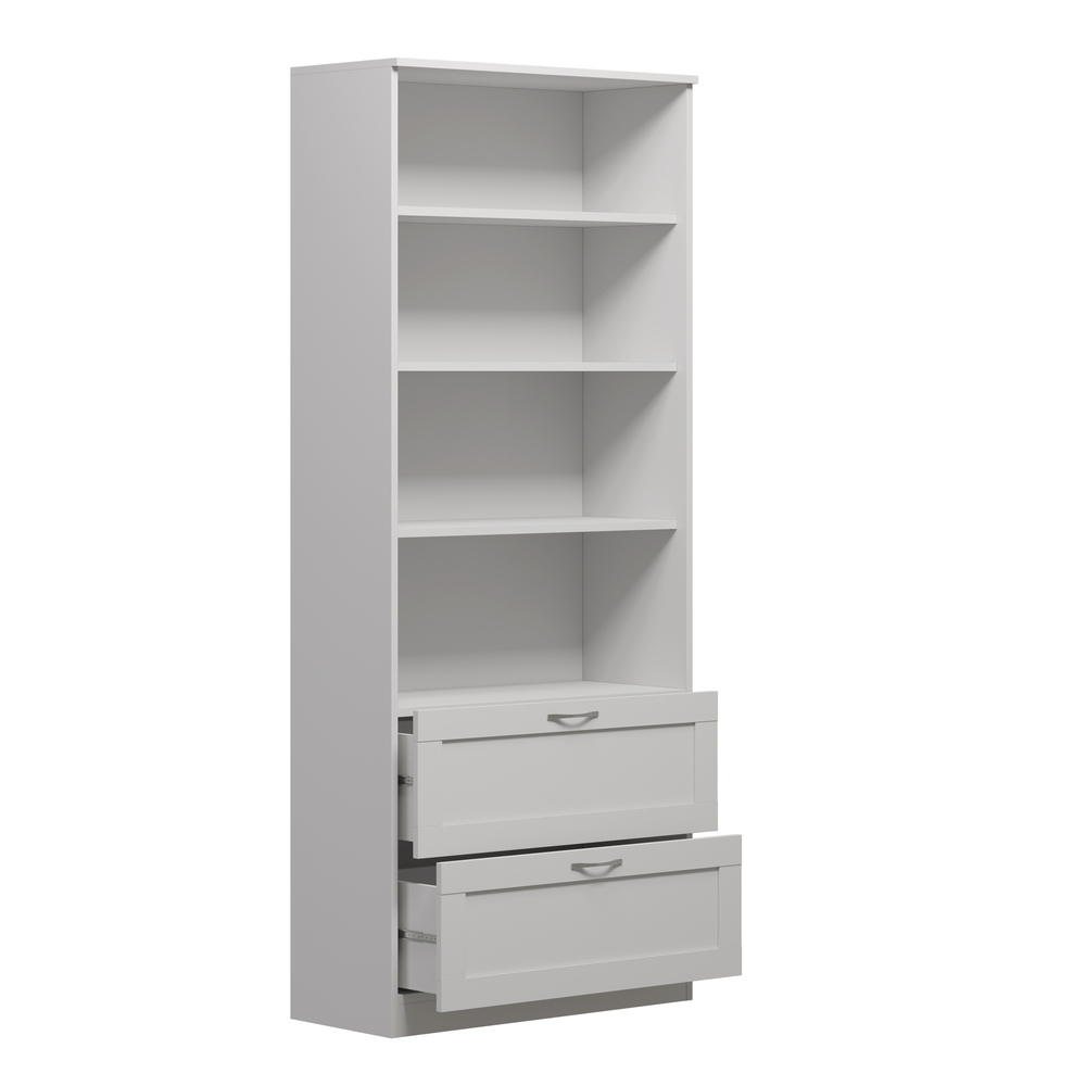 Стеллаж Сириус широкий 78х190 см с 2 ящиками и четырьмя полками. Выполнен в классическом стиле. Размер стеллажа 78х35х190 см. Подходит для использования в домашней и офисной обстановке. Выполнен из ЛДСП.