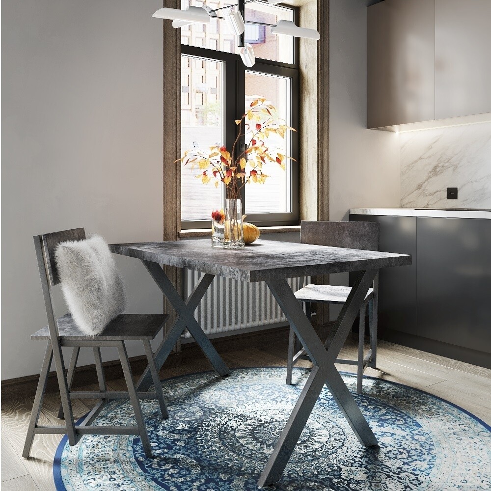 Универсальный стол в стиле Loft, Х-образное металлическое основание. Декор Бетон темный, размер 1200x600x750 мм. Создан для тех, кто ценит комфорт, качество и элегантный дизайн.