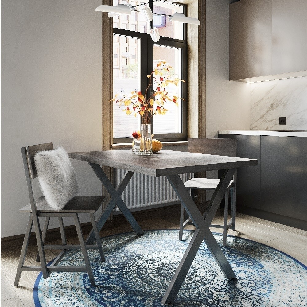 Универсальный стол в стиле Loft, Х-образное металлическое основание. Декор Дуб Рошелье, размер 1200x800x750 мм. Создан для тех, кто ценит комфорт, качество и элегантный дизайн.