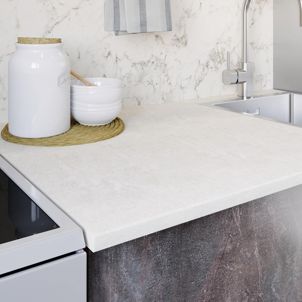 Внимание! Лента кромочная не входит в комплект поставки и приобретается отдельно, код товара 980300 Лента кромочная для столешниц 32х3050 мм королевский опал светлый пластик с клеем. Для оформления стыка фартука и столешницы можно использовать герметик. Код товара: 101855; 101854; 1013882.