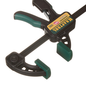 Струбцина предназначена для фиксации и удержания деталей при выполнении столярных и слесарных работ. Инновационная конструкция позволяет работать одной рукой. Быстрый зажим заготовок. Корпус, армированный фибергласом, сочетает в себе легкость пластика и прочность металла. Эффект рычага обеспечивает многократное увеличение прижимной силы. Переставная конструкция предоставляет возможность использования инструмента как для зажима, так и для распора.