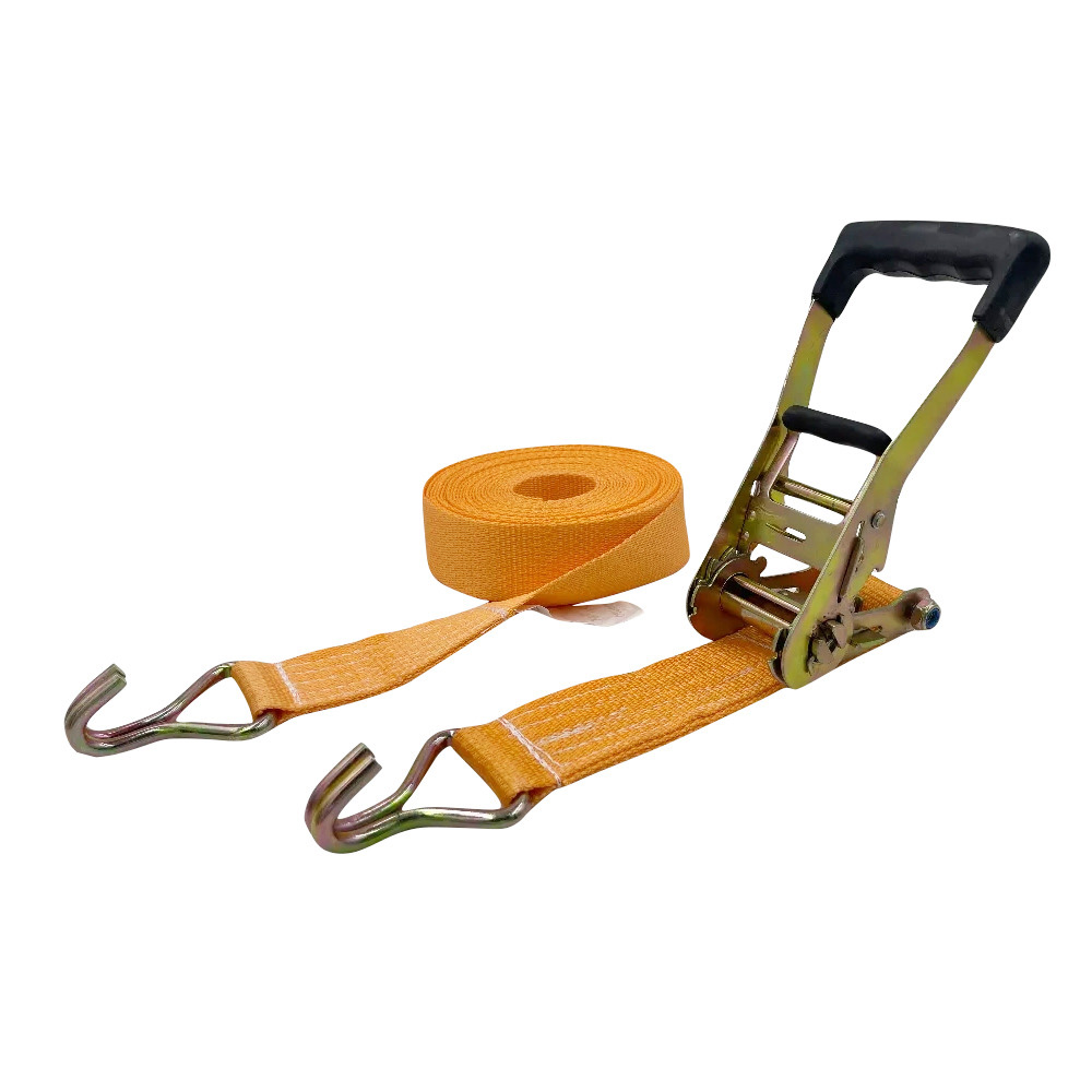 Высококачественный ремень крепления груза комплектуется храповым механизмом, что позволяет надежно зафиксировать груз относительно поверхности, на которой он размещен для перевозки. Материал изготовления ремня – сертифицированная полиэстеровая лента прочная и долговечная. Ремень устойчив к истиранию и негативному воздействию окружающей среды.