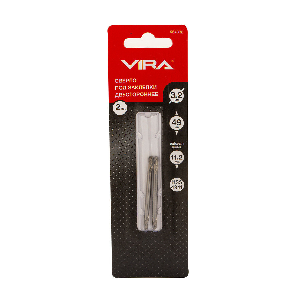 Сверло по металлу двустороннее спиральное Vira 3,2х49 мм под заклепки (2 шт.) (554332)