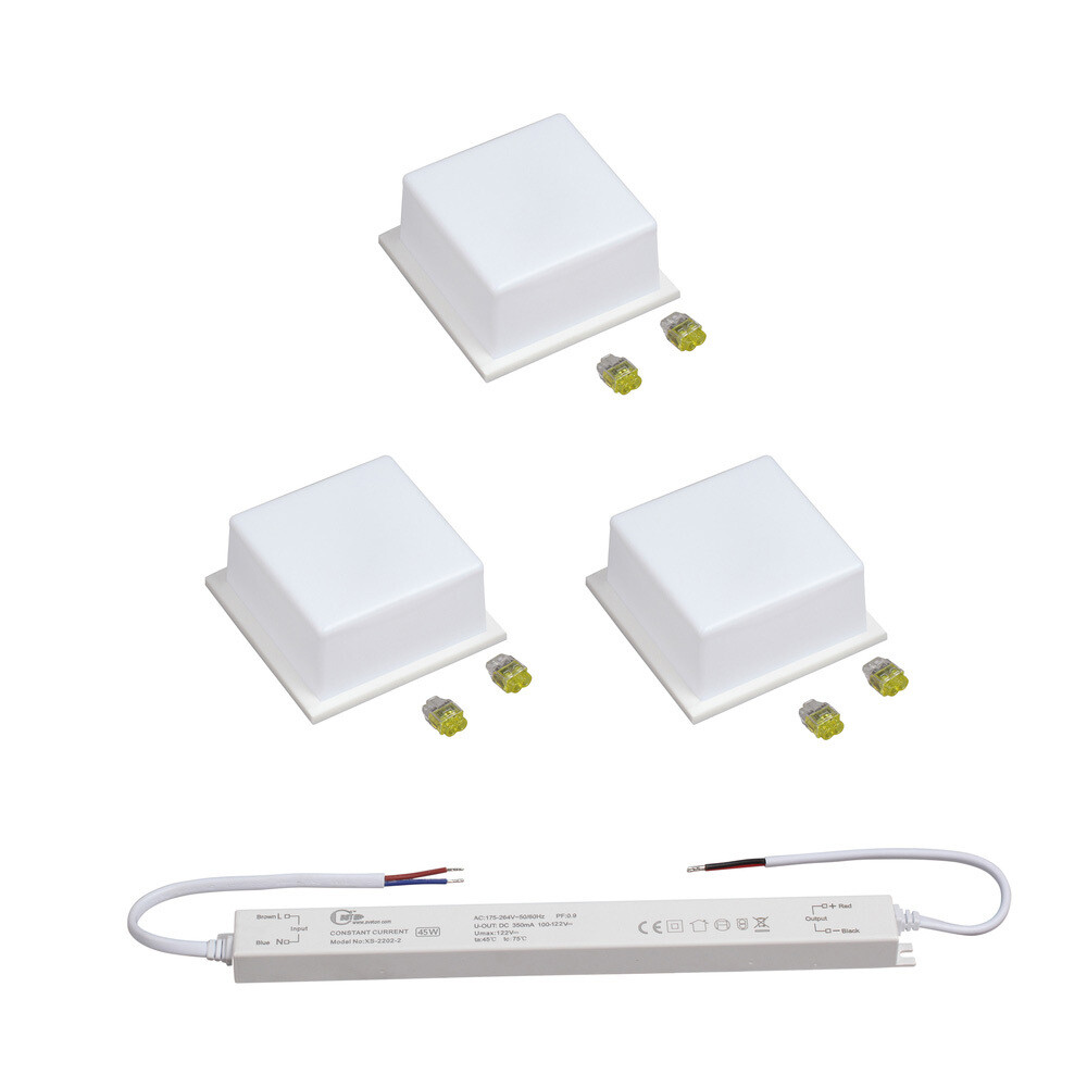 Комплектация: Светильник — 3 шт., блок питания, паспорт, коробка.