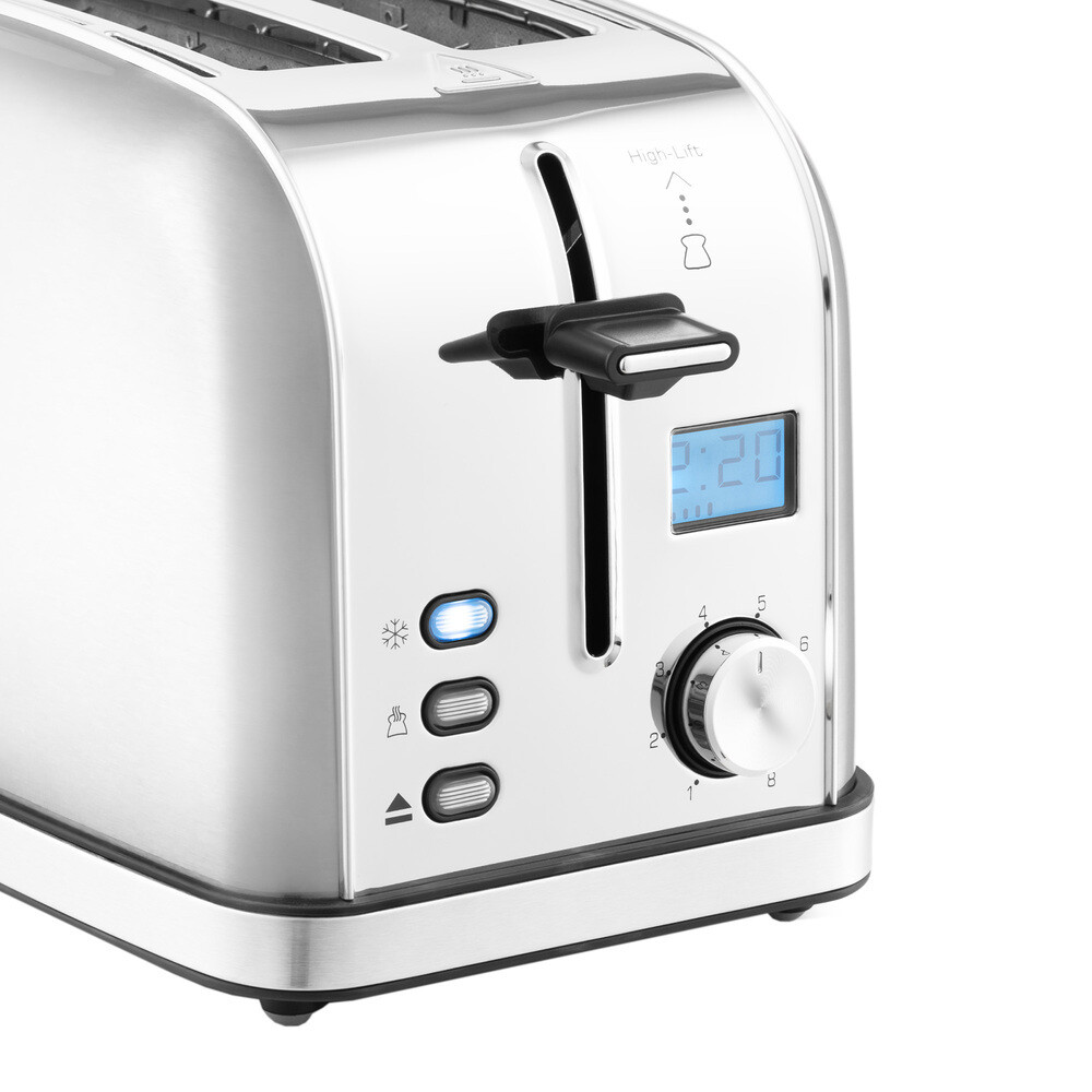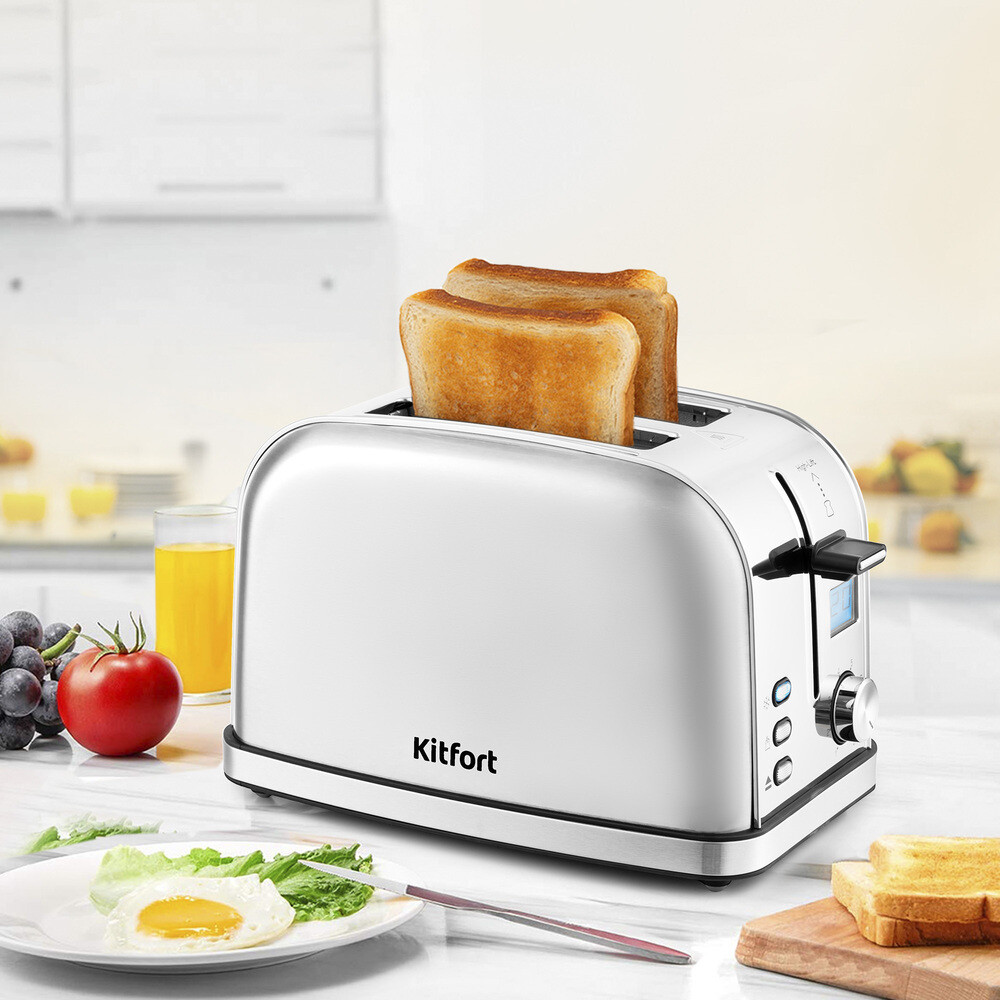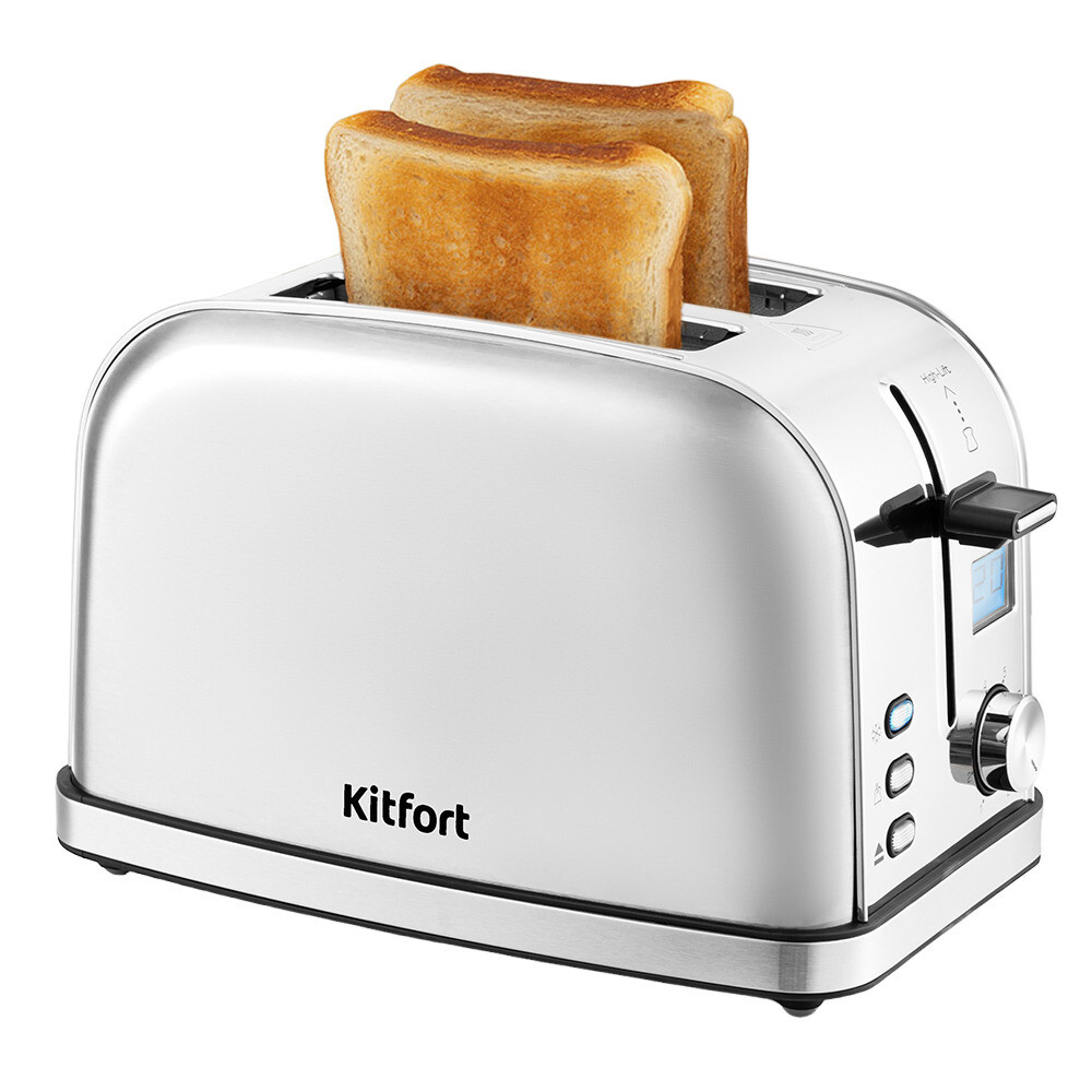 Электрический тостер Kitfort КТ-2036 оснащен поворотным регулятором степени обжаривания, тремя кнопками со световыми индикаторами и жидкокристаллическим дисплеем. Режим разогрева служит для разогрева уже готовых тостов, если они остыли. Режим разморозки позволяет приготовить тосты из замороженного хлеба. Загруженные тосты автоматически центрируются, чтобы их обжарка с двух сторон была равномерной. По окончании приготовления тостер автоматически отключается, а тосты поднимаются вверх для удобного извлечения.