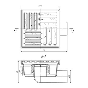 Диаметр отвода – 50 мм, трап нерегулируемый с решеткой из нержавеющей стали 15×15 см. Трап с горизонтальным отводом имеет меньшую строительную высоту по сравнению с вертикальным трапом. Применяется, когда есть ограничения по высоте стяжки (канализационная сеть лежит под самой поверхностью). Подходит для частого использования. Элементарная поплавковая конструкция не позволит проникать запахам из канализации. Корпус выполнен из высококачественного полипропилена. Выдерживает нагрузку до 300 кг.