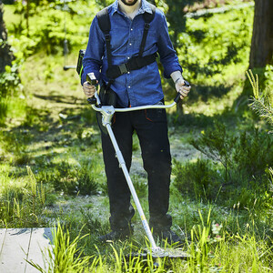 Это полупрофессиональный триммер, который отлично подойдет для ведения дачного хозяйства. Модель оснащена надежным бесщеточным двигателем DigiPro, сопоставимым по мощности с бензиновыми аналогами, при этом он абсолютно экологичен, имеет высокий крутящий момент, низкий уровень шума и вибраций, а также прост в эксплуатации. Включение триммера производится одной кнопкой, основное применение — подрезка травы в труднодоступных для газонокосилки местах, а также подрезка кустарника. Эта модель имеет наплечный ремень, а также эргономичную велосипедную рукоятку. Для долговечной работы двигатель имеет защиту от перегрузки, вал между двигателем и режущей частью — 2-х составной, выполнен из стали.