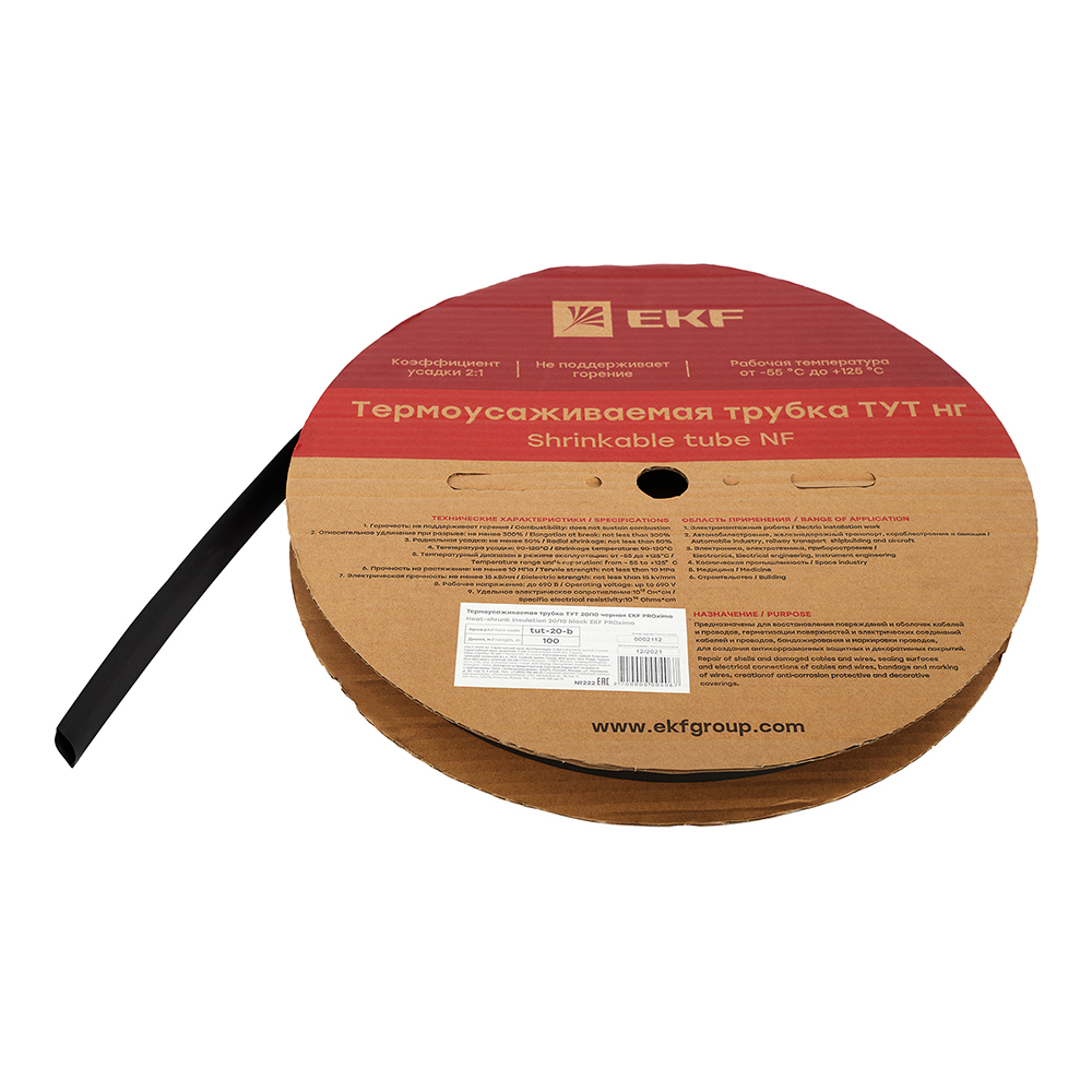 Трубка термоусадочная EKF ТУТ 20/10 мм черная (100 м)