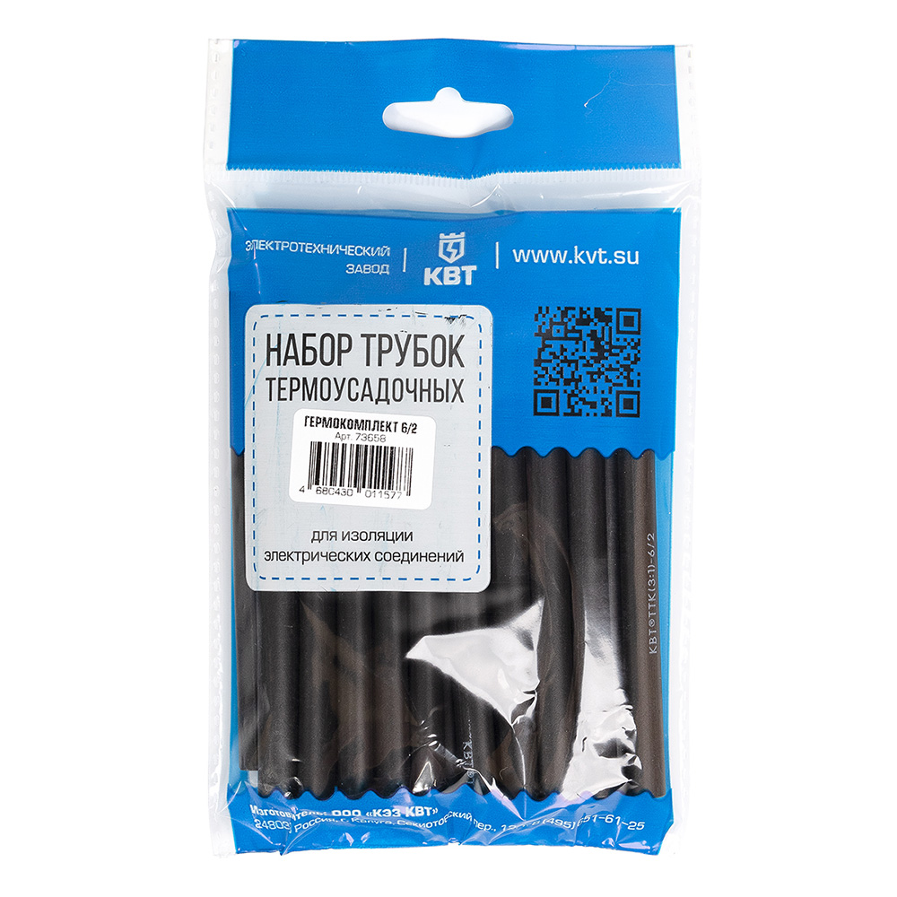 Трубка термоусадочная КВТ Гермокомплект ТТК 6/2 мм 100 мм черная (20 шт.)