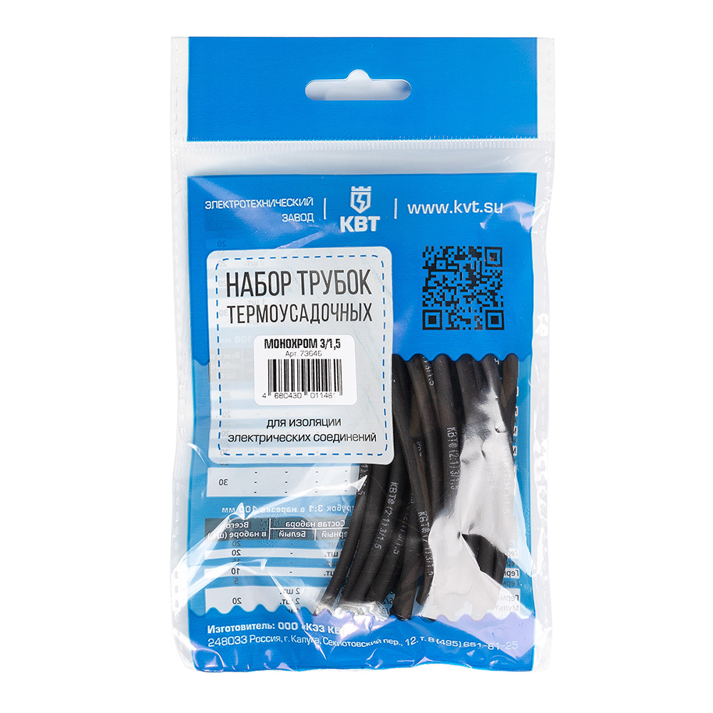 Трубка термоусадочная КВТ Монохром ТНТ нг 3/1,5 мм 100 мм черная (20 шт.)