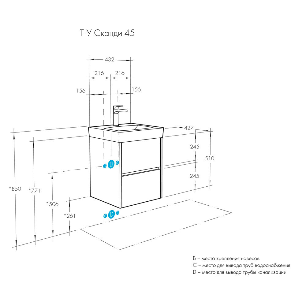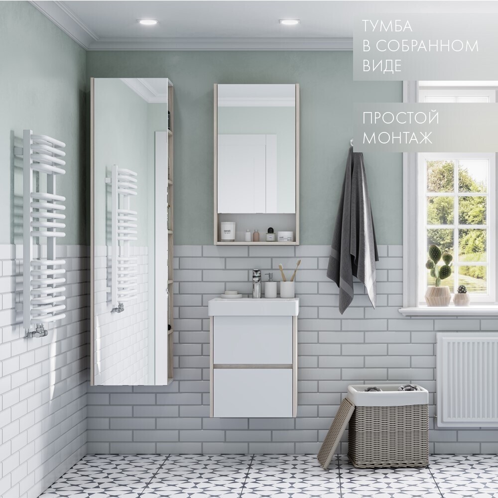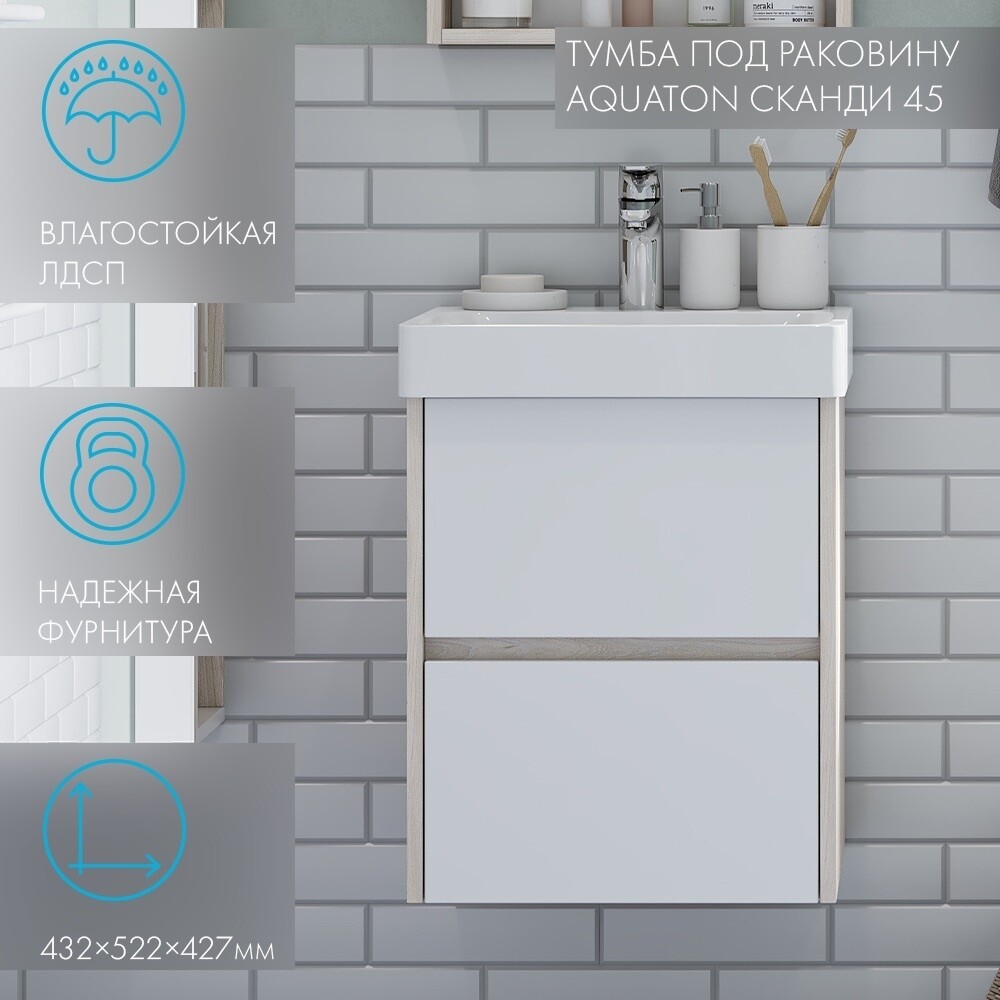 Тумба под раковину Aquaton Сканди 45 см подвесная белая/дуб верона (1A251601SDB20)