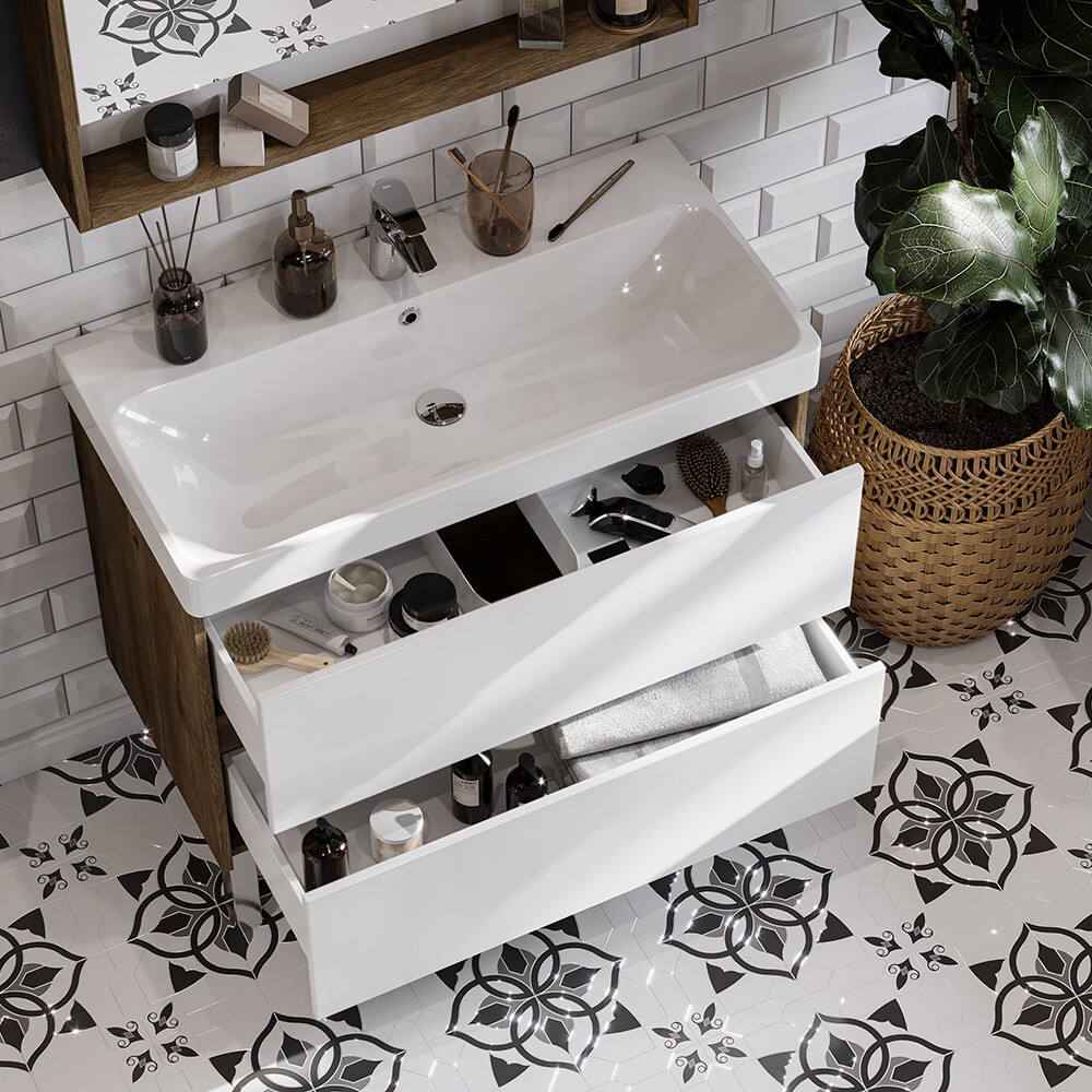 Тумба под раковину Aquaton Сканди 90 см подвесная белая/дуб рустикальный (1A251901SDZ90)