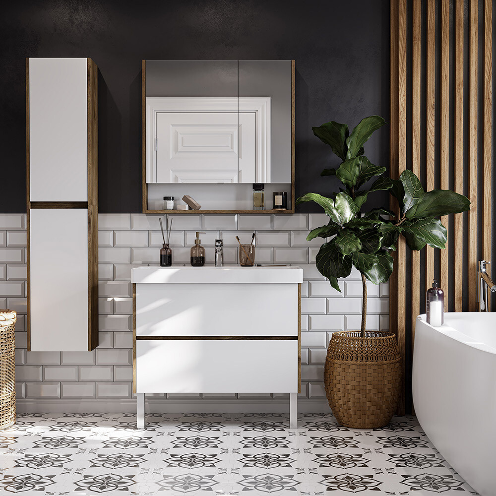 Предназначена для оборудования ванных комнат. Тумба Сканди выполнена в популярном минималистичном скандинавском стиле. Корпус тумбы выполнен из влагостойкой ЛДСП в декоре натурального дерева, а фасады в белой глянцевой покраске. Конструктивно тумба состоит из 2 вместительных ящиков, установленных на направляющие с интегрированной системой push-to-open для комфортного использования. На тумбе нет выступающих деталей и фурнитуры, открытие ящиков реализовано нажатием на фасад. Тумбу по желанию можно использовать в двух вариантах: как подвесную или дополнительно приобрести опоры. Раковина приобретается отдельно.