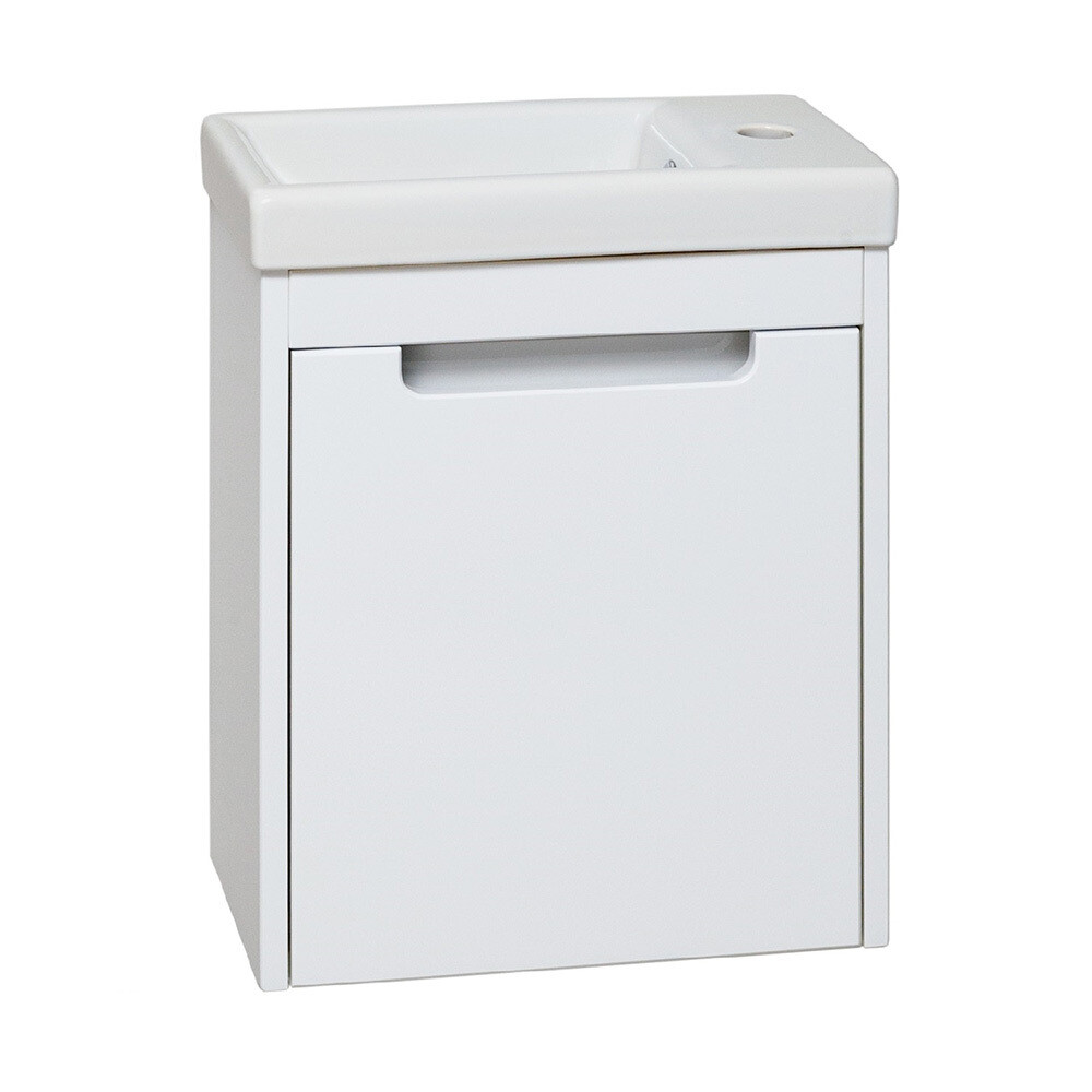 Тумба под раковину подвесная с одним распашным фасадом, открывающимся слева направо (петли справа). Выполнена в классическом белом цвете и отлично впишется в любой интерьер ванной комнаты.