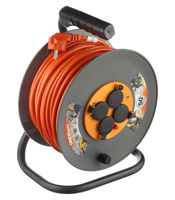 Удлинитель UNIVersal с заземлением 50 м на катушке 3,5 кВт 4 розетки ПВС 3х1,5 кв.мм IP44
