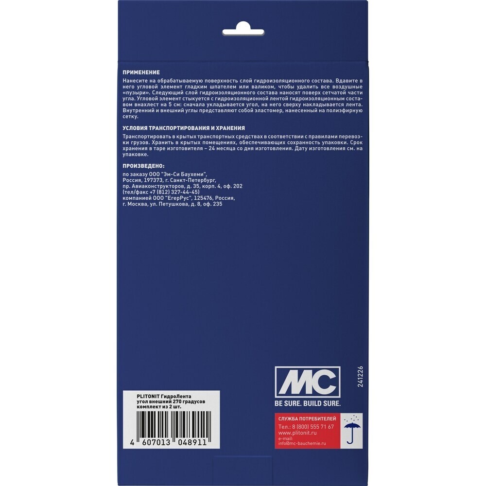 Угол гидроизоляционный внутренний Plitonit ГидроЛента 120х140 мм (2 шт.)