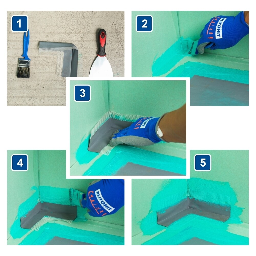 Внутренний угловой элемент используется в сочетании с гидроизоляционной лентой и гидроизоляционными составами для обеспечения гидроизоляции углов во влажных помещениях (душевых, санузлах, ванных комнатах и т.д.).