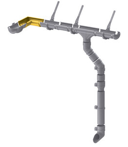 Устанавливается на внешних и внутренних углах кровли и предназначен для соединения желобов под углом 90° в целях изменения направления движения воды.