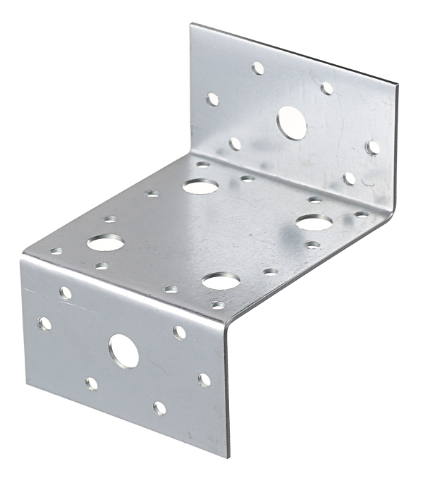 Изготовлен из оцинкованной стали. Имеет отверстия диаметром 5 мм под саморезы или гвозди и 13 мм под болты или штанги с резьбой.