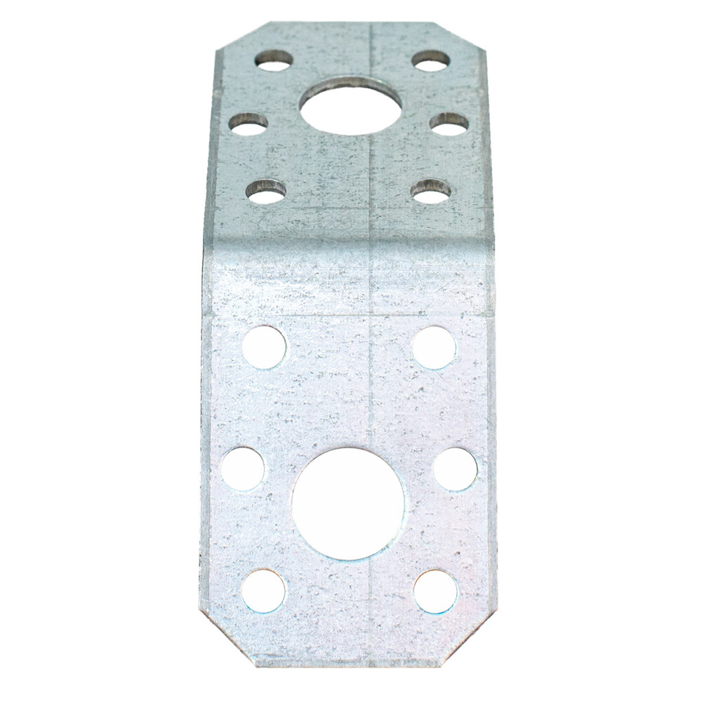 Изготовлен из оцинкованной стали. Имеет отверстия диаметром 5 мм под саморезы или гвозди и 13 мм под болты или штанги с резьбой.