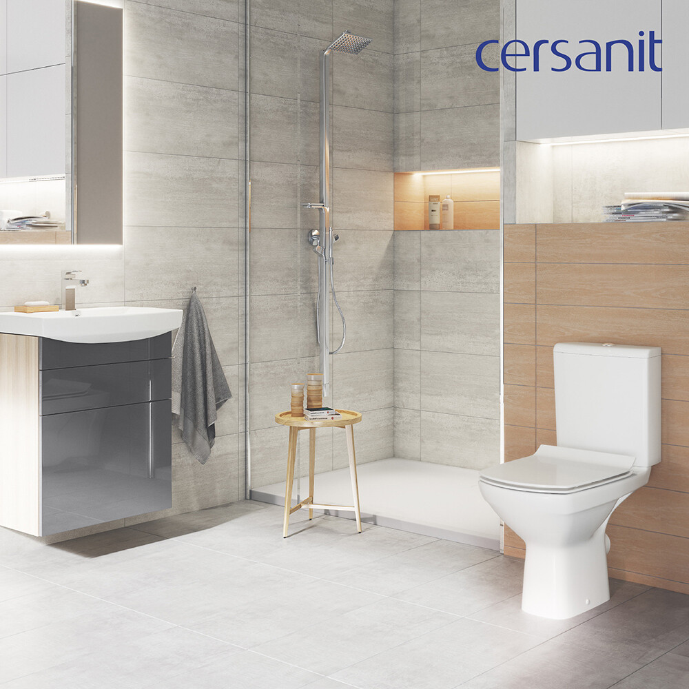 Унитаз-компакт Cersanit Carina Clean On безободковый с горизонтальным выпуском с сиденьем дюропласт микролифт белый (S-KO-CAR011-3/5-COn-S-DL-w)