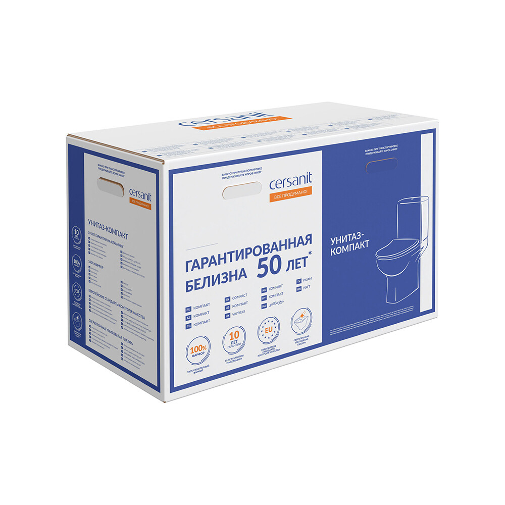 Унитаз-компакт Cersanit Nature Clean On безободковый с горизонтальным выпуском с сиденьем дюропласт микролифт белый (65410)