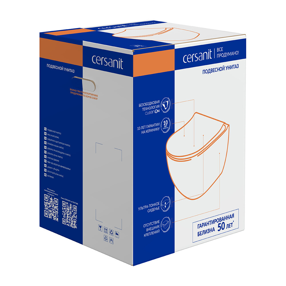 Комплектация: Унитаз керамический безободковый, сиденье для унитаза из дюропласта ультратонкое легкосъемное с функцией плавного закрывания, монтажный комплект, инструкция/гарантийный талон.