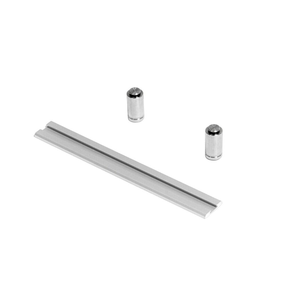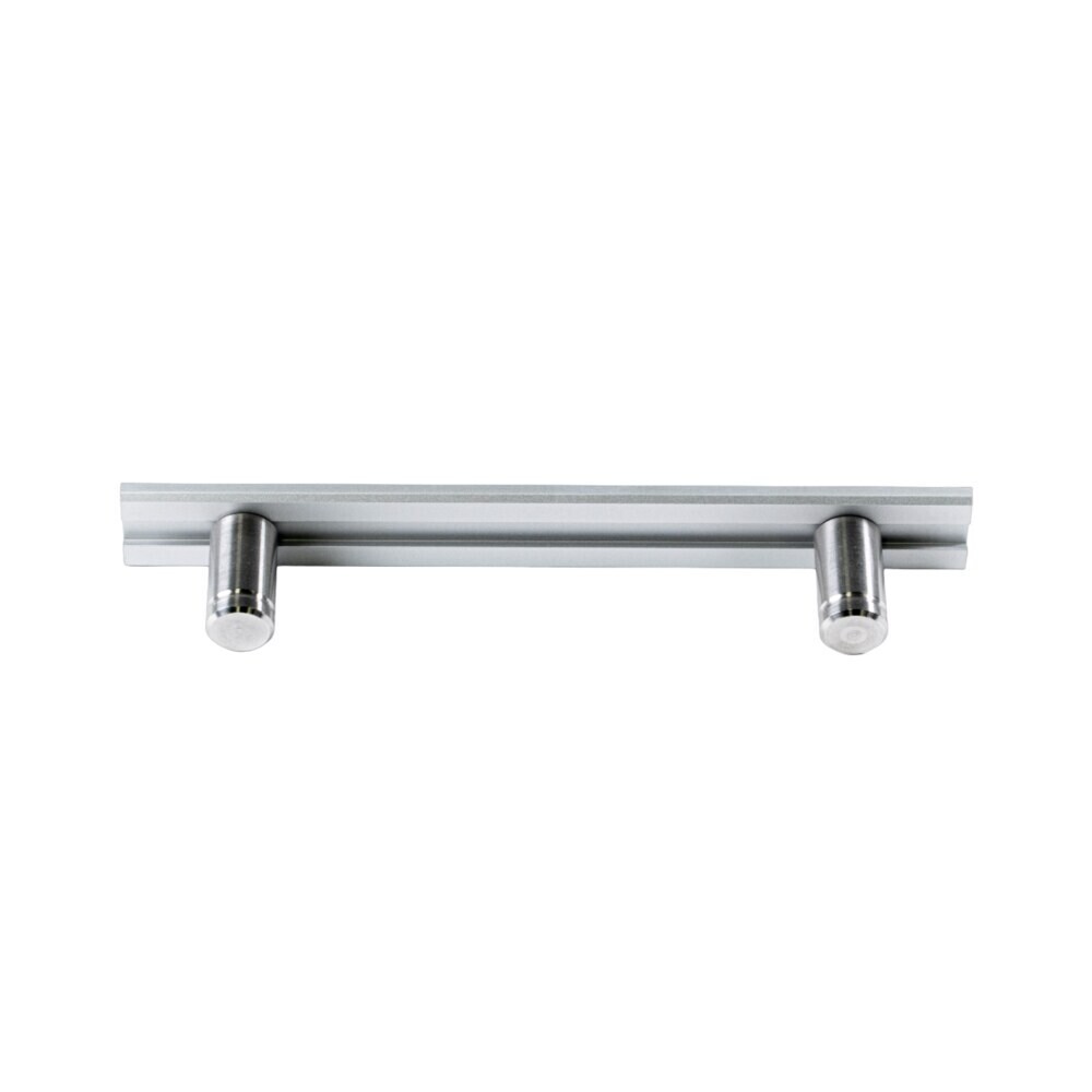 – Два нержавеющих фиксатора D 19,8 мм, свободно перемещающиеся снизу планки в Т-образном пазе.