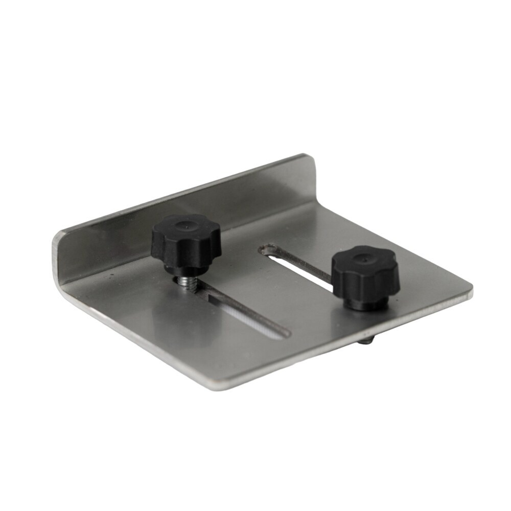 Упор KT RJS 0.24 кг для фрезерного шаблона — необходимое приспособление для выравнивая фрезерного шаблона относительно обрабатываемой заготовки. Используется для обработки одинаковых или узких заготовок. Выполнен из нержавеющей стали.