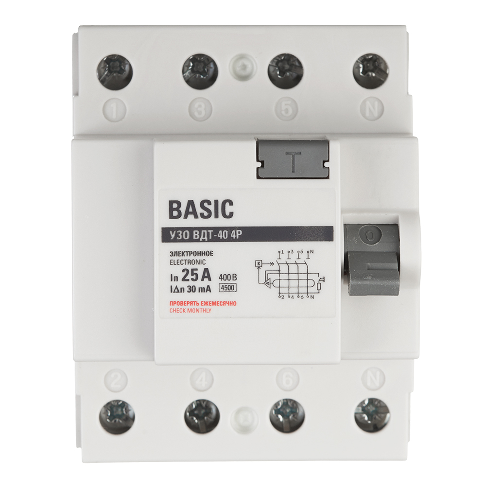 УЗО EKF Basic ВДТ-40 25А 3P+N тип AC 30 мА 4,5 кА (elcb-4-25-30e-sim)