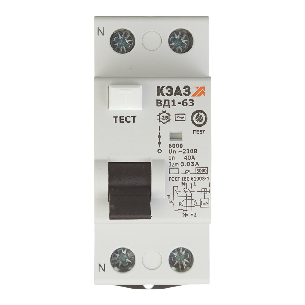 УЗО КЭАЗ OptiDin ВД1-63 40А 1P+N тип AC 30 мА 4,5 кА (221905)