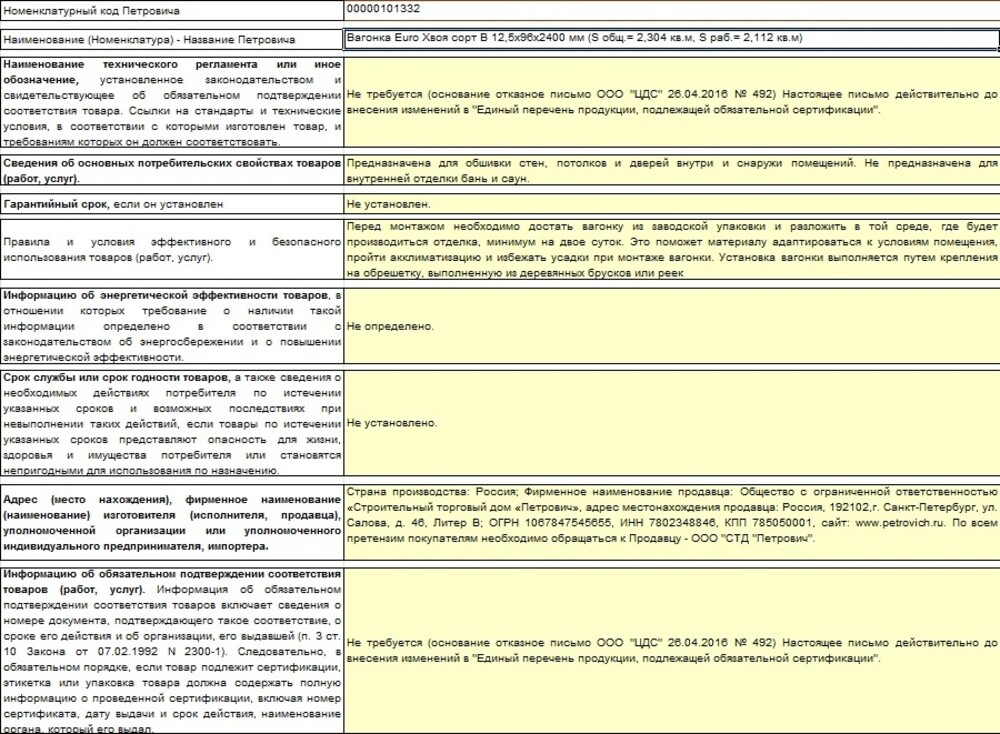 Предназначена для обшивки стен, потолков и дверей внутри и снаружи помещений. Не предназначена для внутренней отделки бань и саун.