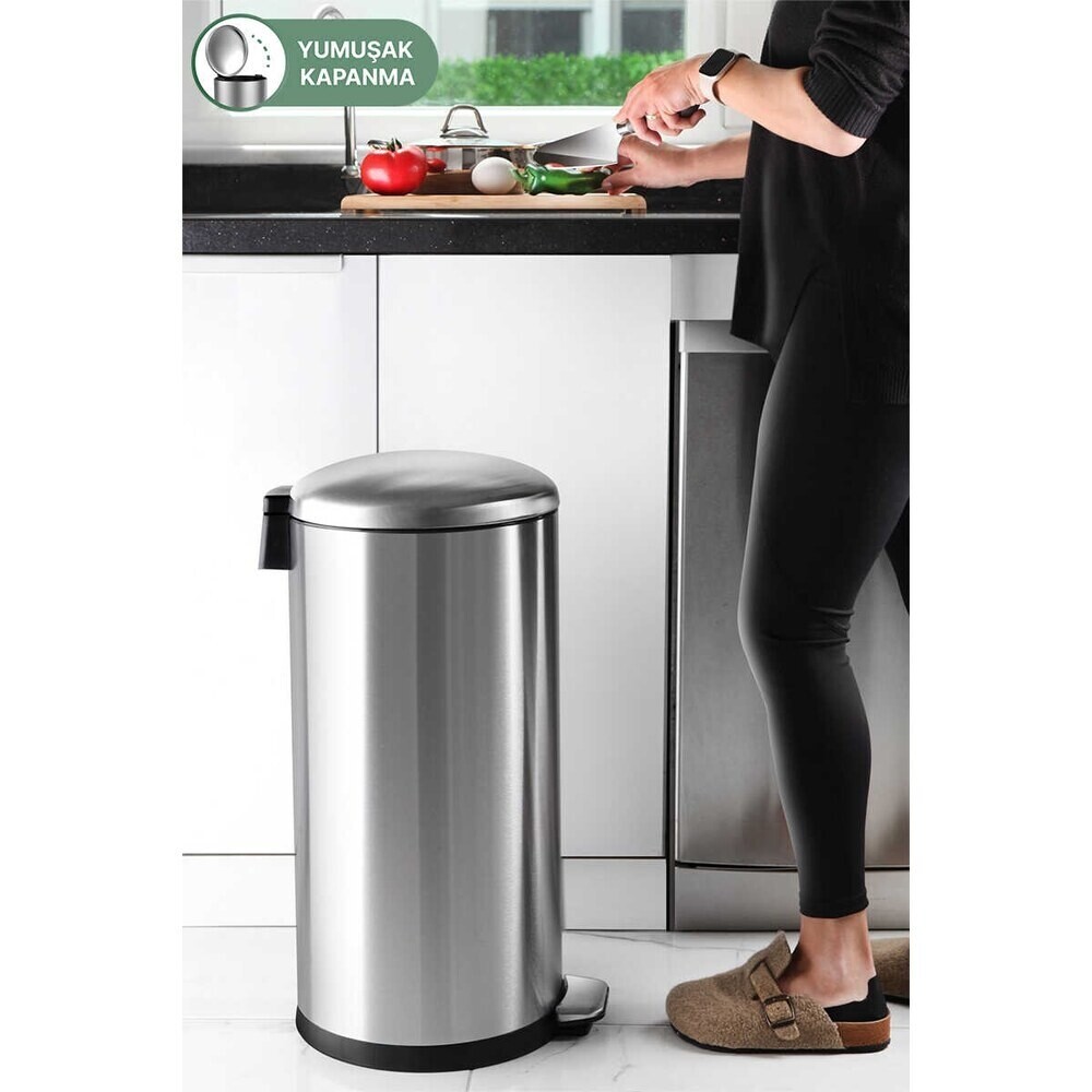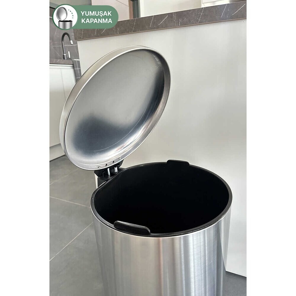 Урна с педалью и округлой крышкой. Внутренний пластиковый контейнер.