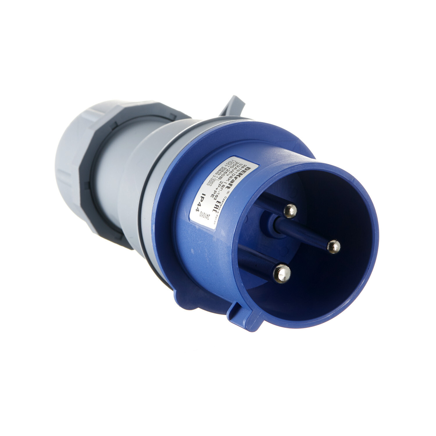 Вилка силовая прямая переносная Dekraft ВП-103 с заземлением 2P+PE 1 фаза 32 А 220 В IP44 синяя (26101DEK)
