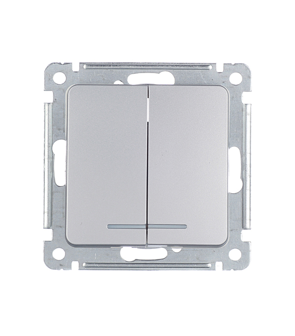 Выключатель Hegel Master двухклавишный встраиваемый серебро с подсветкой (ВС10-452-06)