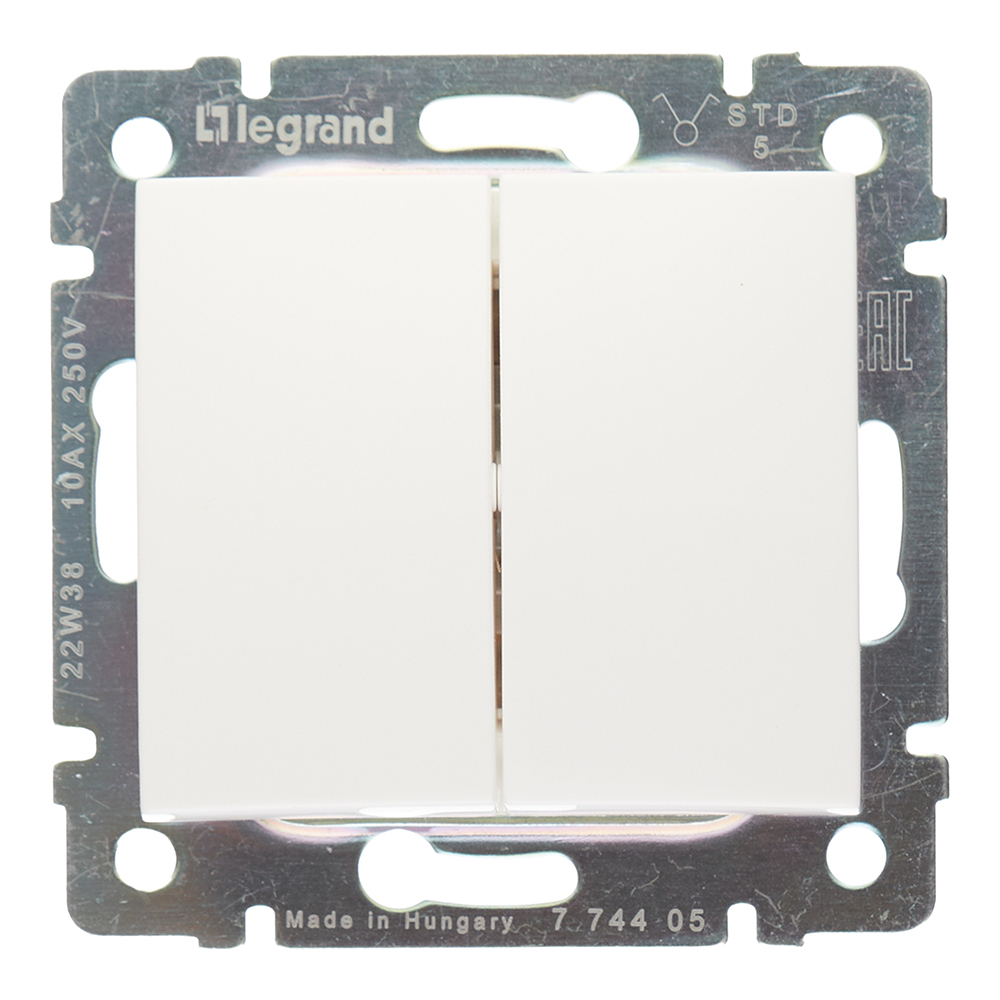 Выключатель Legrand Valena двухклавишный встраиваемый белый (694265)