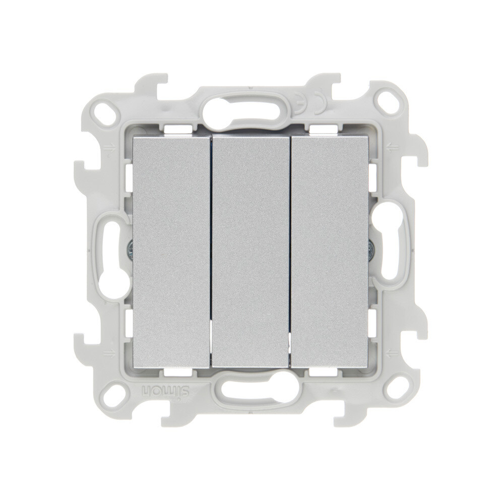 Выключатель Simon 24 Harmonie трехклавишный встраиваемый алюминий (2450391-033)