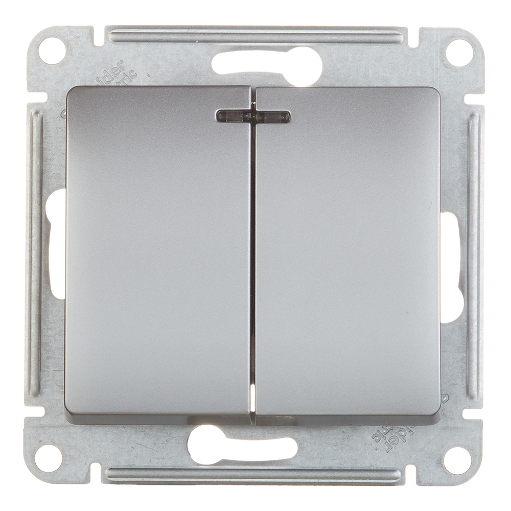 Выключатель Systeme Electric Glossa двухклавишный встраиваемый алюминий с подсветкой (GSL000353)
