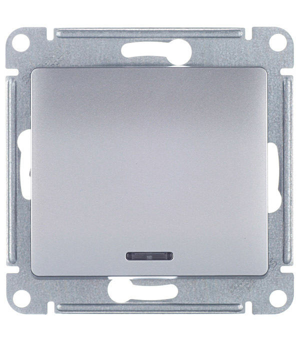 Выключатель Systeme Electric Glossa одноклавишный встраиваемый алюминий с подсветкой (GSL000313)