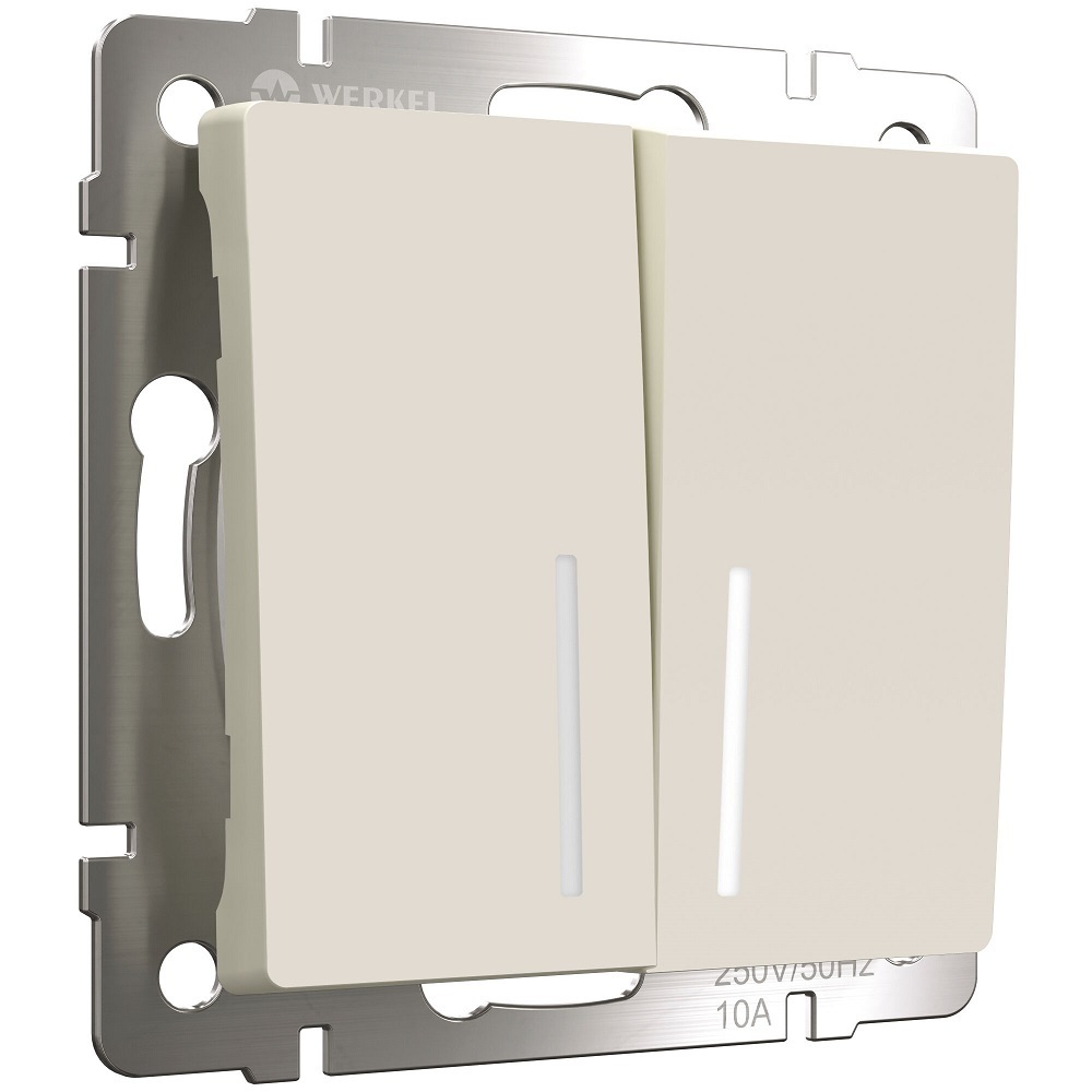 Выключатель Werkel двухклавишный встраиваемый айвори матовый проходной с подсветкой (a062421)