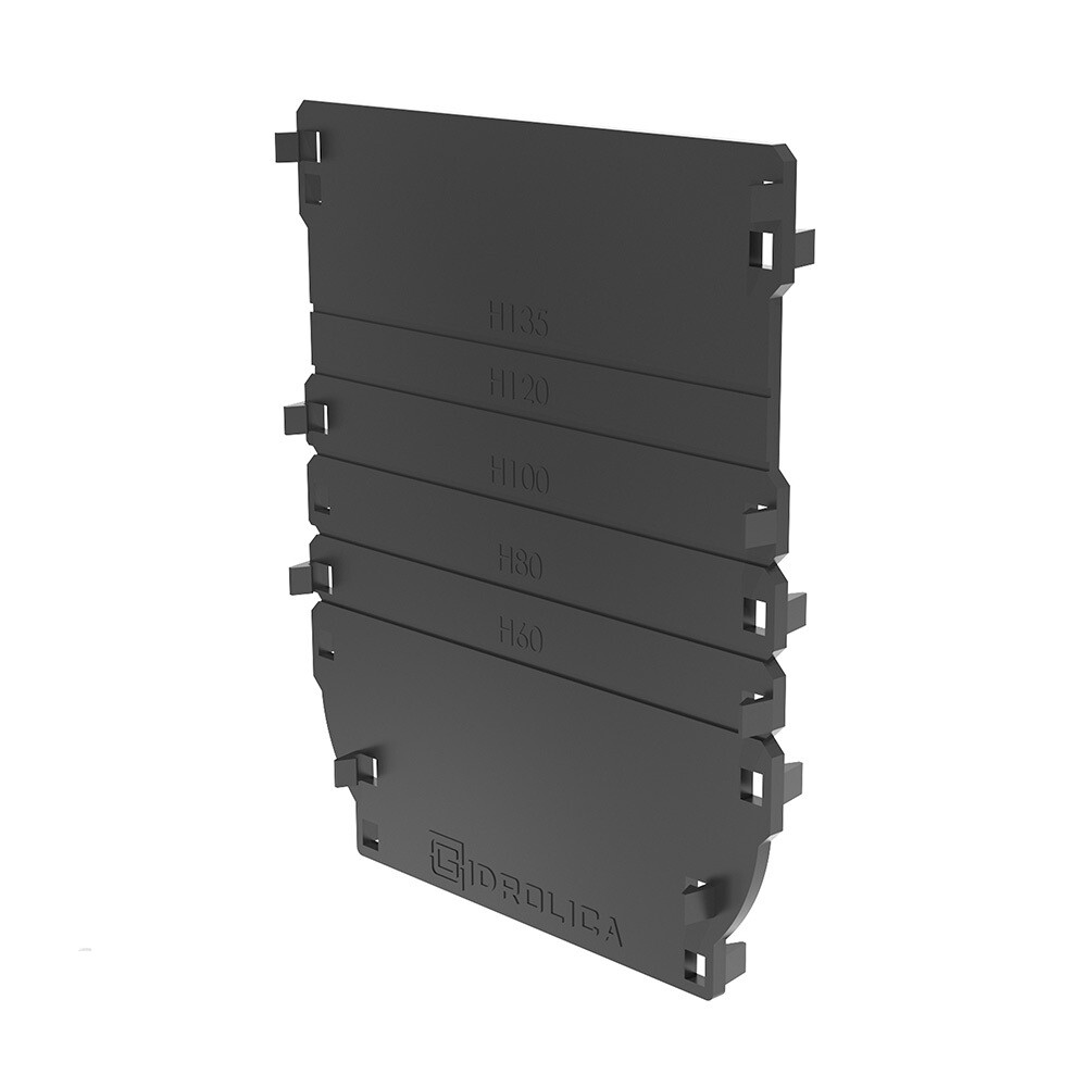 Заглушка торцевая универсальная для лотка водоотводного пластикового DN100 Гидролика, применяется для того, чтобы закрыть торцы линии лотков, в начале линии и в конце.