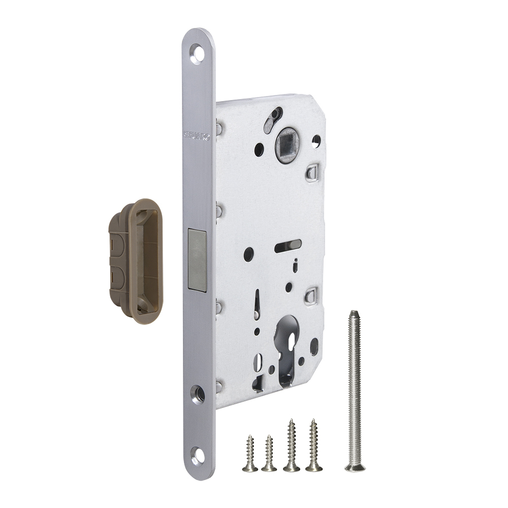 Замок врезной магнитный Fuaro M85C-50 для межкомнатной двери под цилиндр сатинированный хром