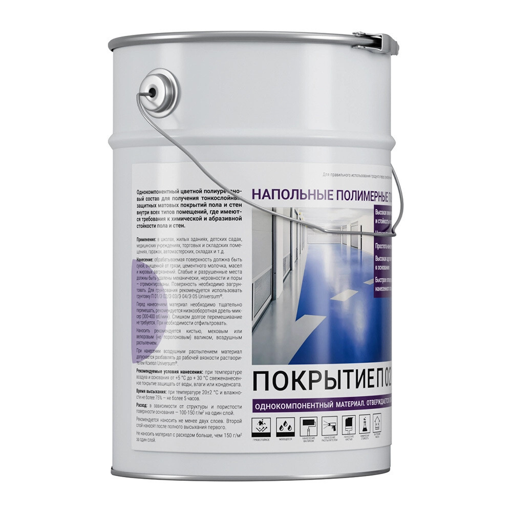 Однокомпонентная цветная полиуретановая композиция для устройства тонкослойных защитных матовых покрытий пола и стен внутри помещений. Отверждается влагой воздуха. Поверхность пола после нанесения покрытия легко убирается любым способом. Покрытие не обеспечивает выравнивания основания и применяется только внутри помещений.