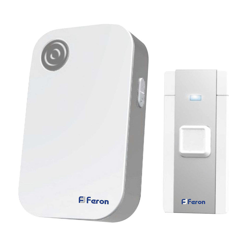 Звонок Feron (23685) беспроводной с кнопкой 36 мелодий белый/серый