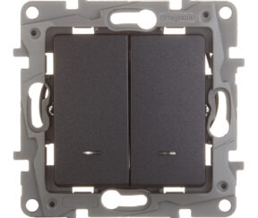 Первоначальная цена составляла 405 ₽.405 ₽Текущая цена: 405 ₽.штВыключатель Legrand Etika двухклавишный встраиваемый антрацит с подсветкой (672604)