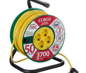 Первоначальная цена составляла 2262 ₽.2262 ₽Текущая цена: 2262 ₽.шт.Удлинитель Союз с заземлением 50 м на катушке 2,2 кВт 4 розетки ПВС 3х0,75 кв.мм IP20