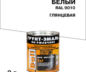 Первоначальная цена составляла 430 ₽.430 ₽Текущая цена: 430 ₽.штГрунт-эмаль по ржавчине 3в1 Dali белая RAL 9010 глянцевая 2 л