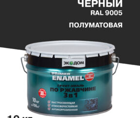 Первоначальная цена составляла 1614 ₽.1614 ₽Текущая цена: 1614 ₽.шт.Грунт-эмаль по ржавчине 3в1 Экодом черная RAL 9005 полуматовая 10 кг