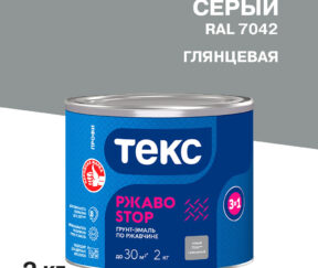 Первоначальная цена составляла 2270 ₽.2270 ₽Текущая цена: 2270 ₽.шт.Грунт-эмаль по ржавчине 3в1 Текс РжавоStop серая глянцевая 2 кг